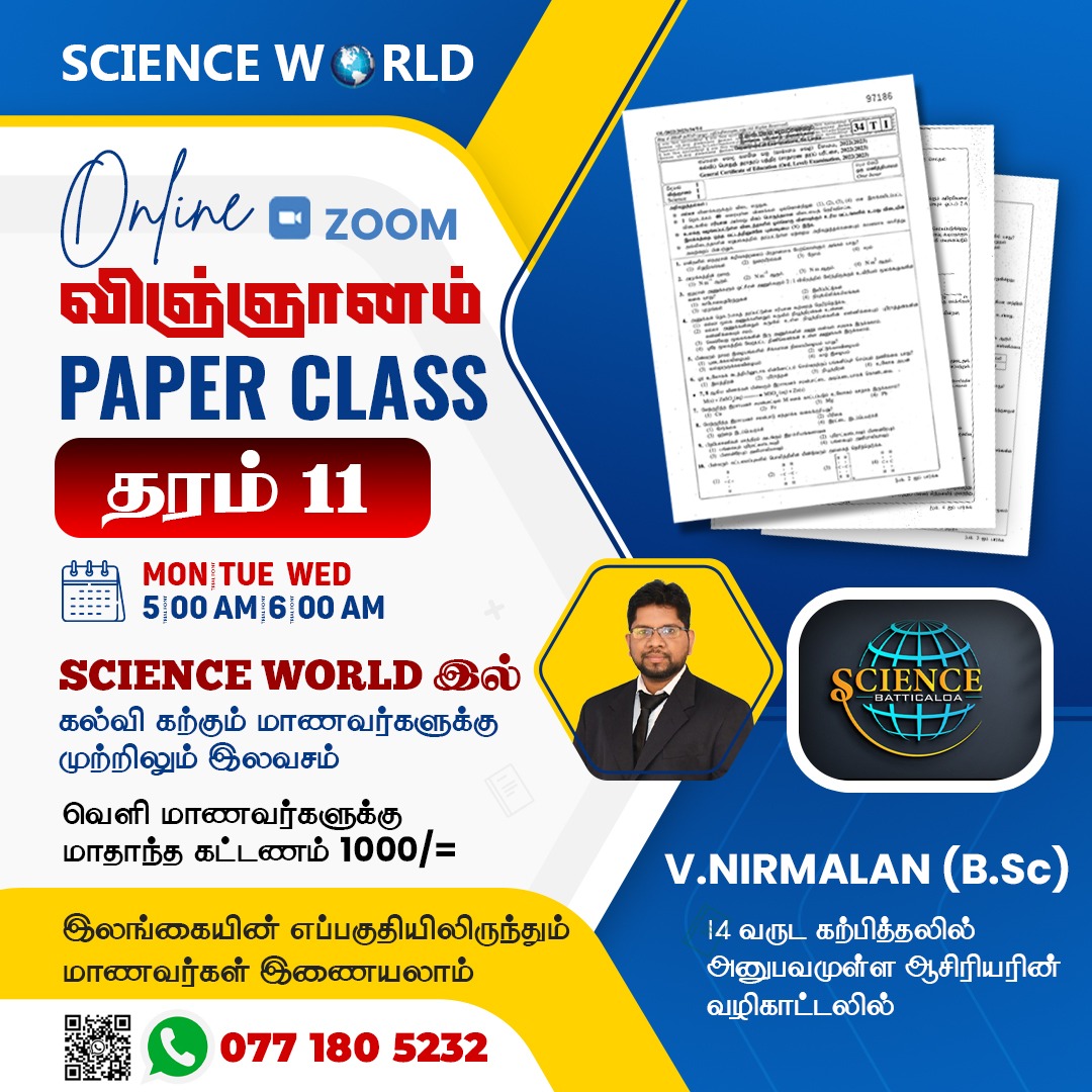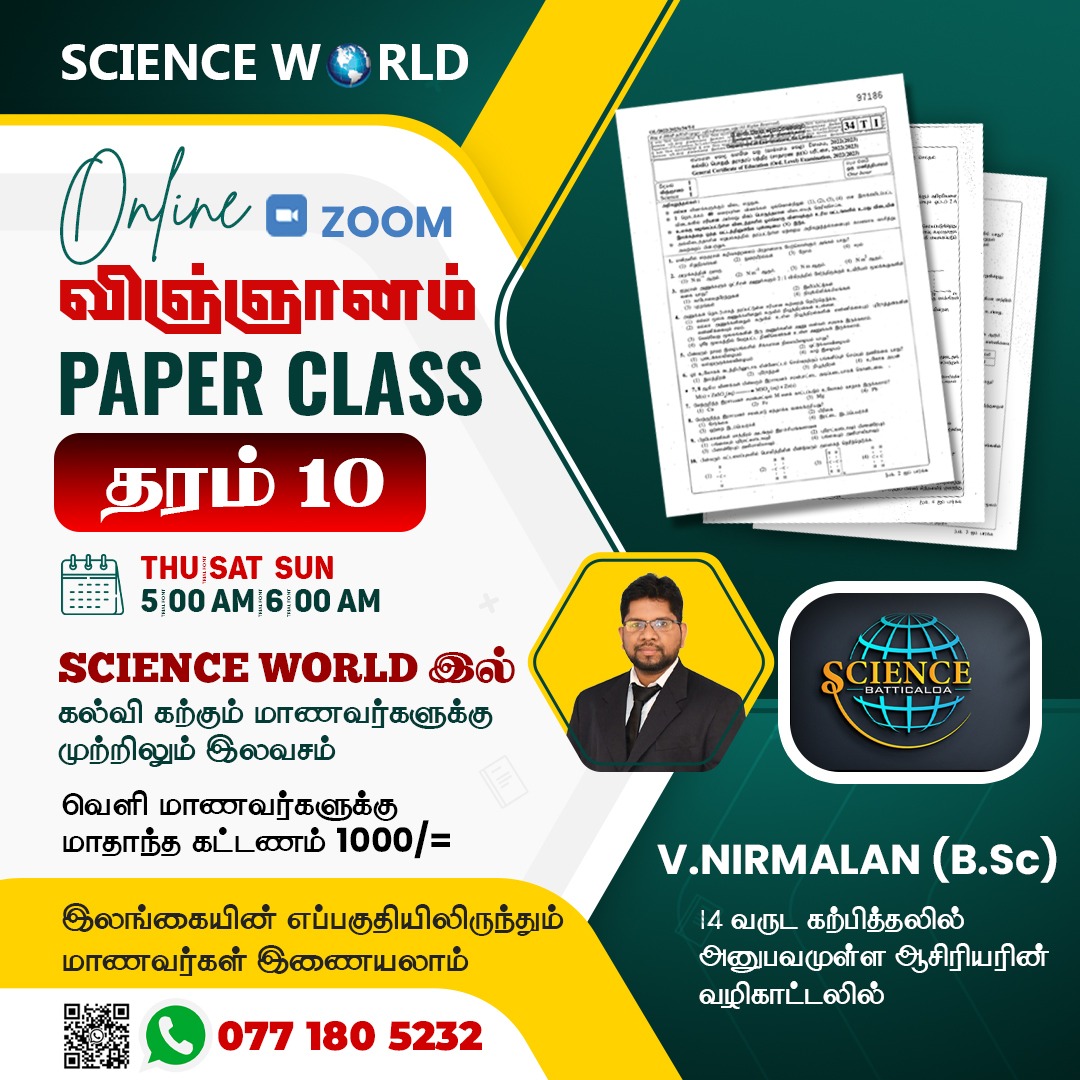 In your class parents have no worries about their kids behaviours . I 100% surely recommend Science world batticaloa . Sir I will get an A Pass for sure Sir . You are the best teacher I have ever seen in my life . Wish you strength, happiness and good health with my whole heart ❣️ I will never forget you in my life