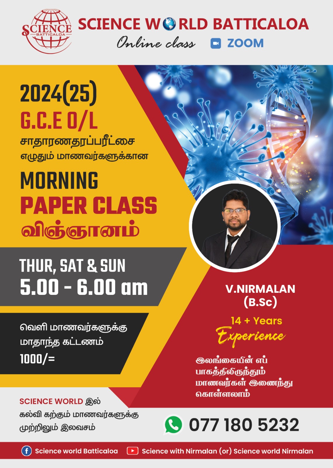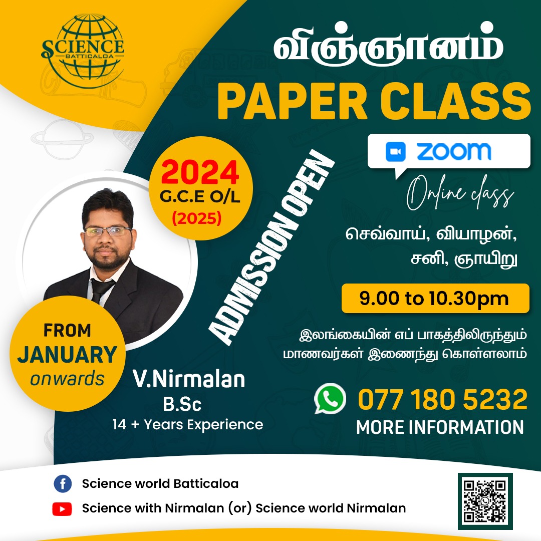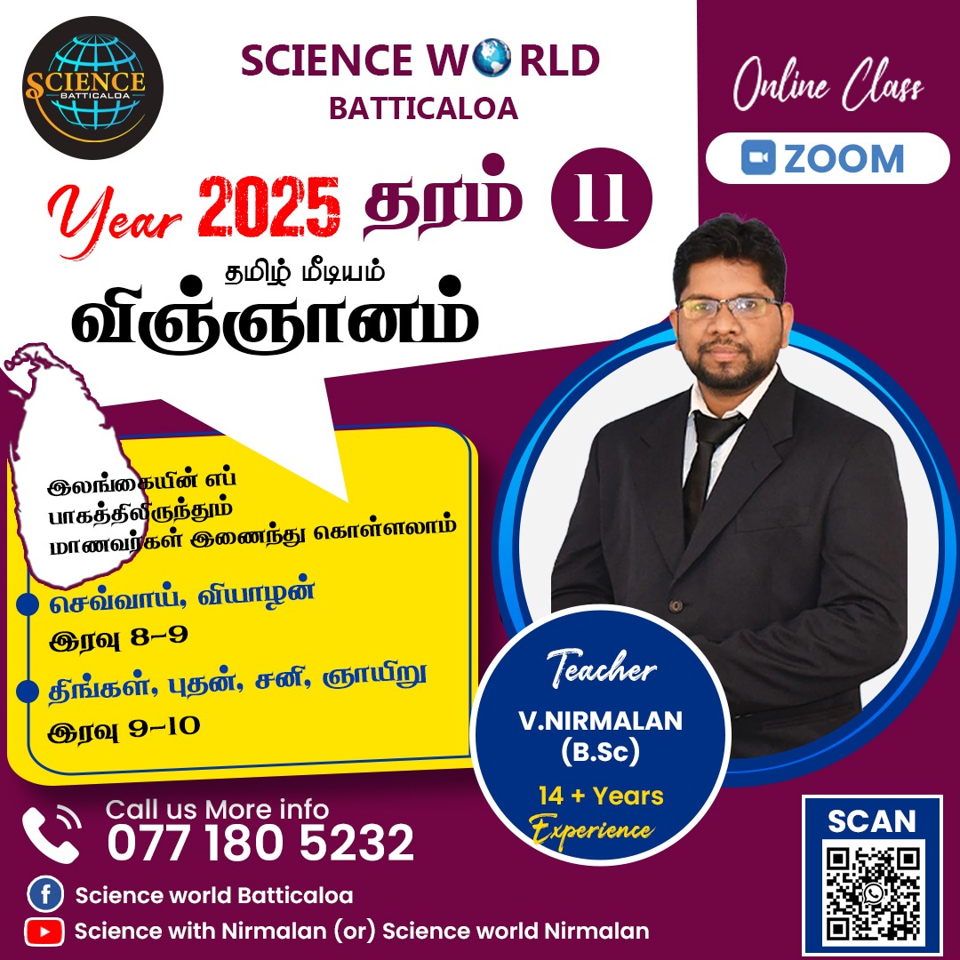 In your class parents have no worries about their kids behaviours . I 100% surely recommend Science world batticaloa . Sir I will get an A Pass for sure Sir . You are the best teacher I have ever seen in my life . Wish you strength, happiness and good health with my whole heart ❣️ I will never forget you in my life